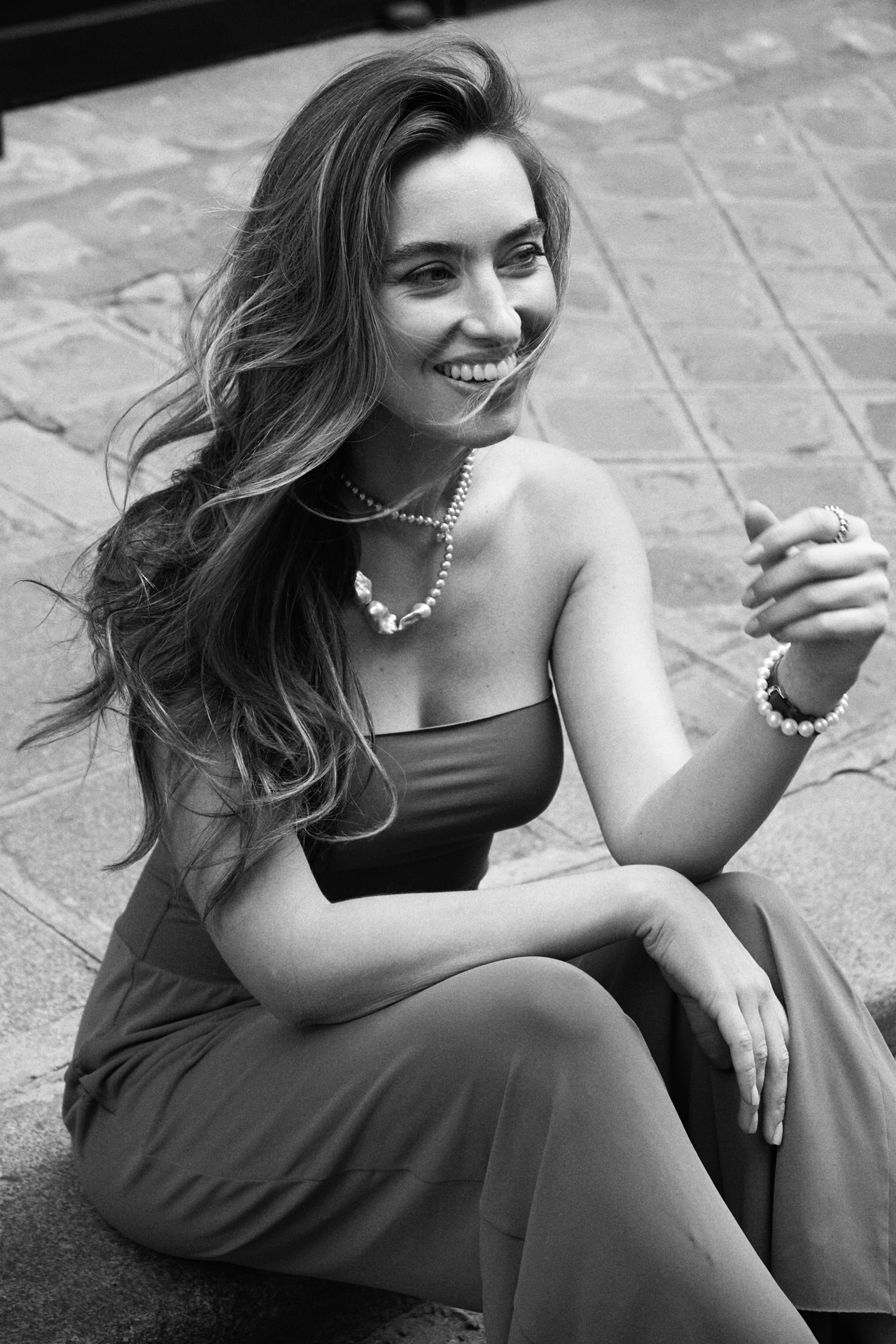 This necklace breaks away from the idea of a “classic” pearl strand. Featuring luminous grey pearls and two interlocking loops, it captures the effortless, unconventional elegance that defines Saint Germain.